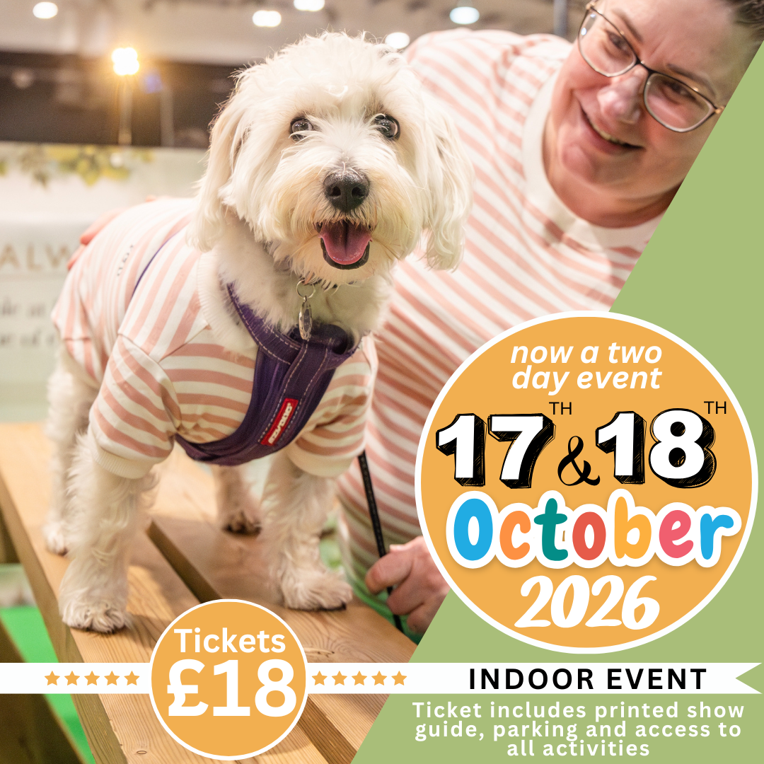 17th & 18th October, 2026, in Halls 1 & 2, NAEC, Stoneleigh Park, Coventry, CV8 2LG. Join us for live performances, a tail-wagging dog picnic, a fun-filled dog show, and meet the breeds. Shop till you drop, watch jaw-dropping demos, and visit the Professionals Village for expert advice. Dive into the action in our interactive hubs—and that’s just the beginning!